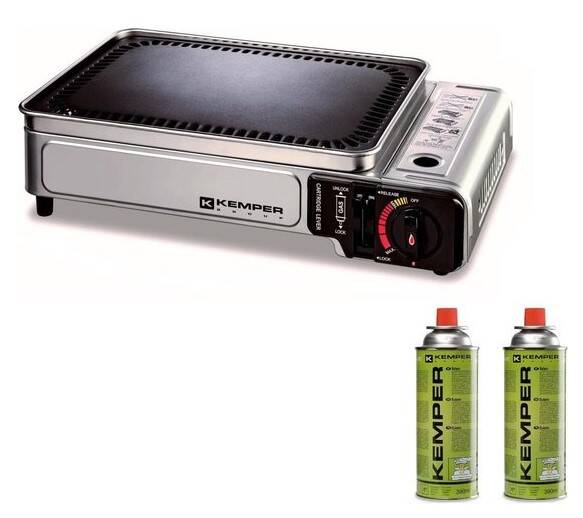 Kemper Smart grill Plancha - draagbare gas barbecue, Tafel barbecue, BBQ Campingkooktoestel - incl. 2 gasflessen